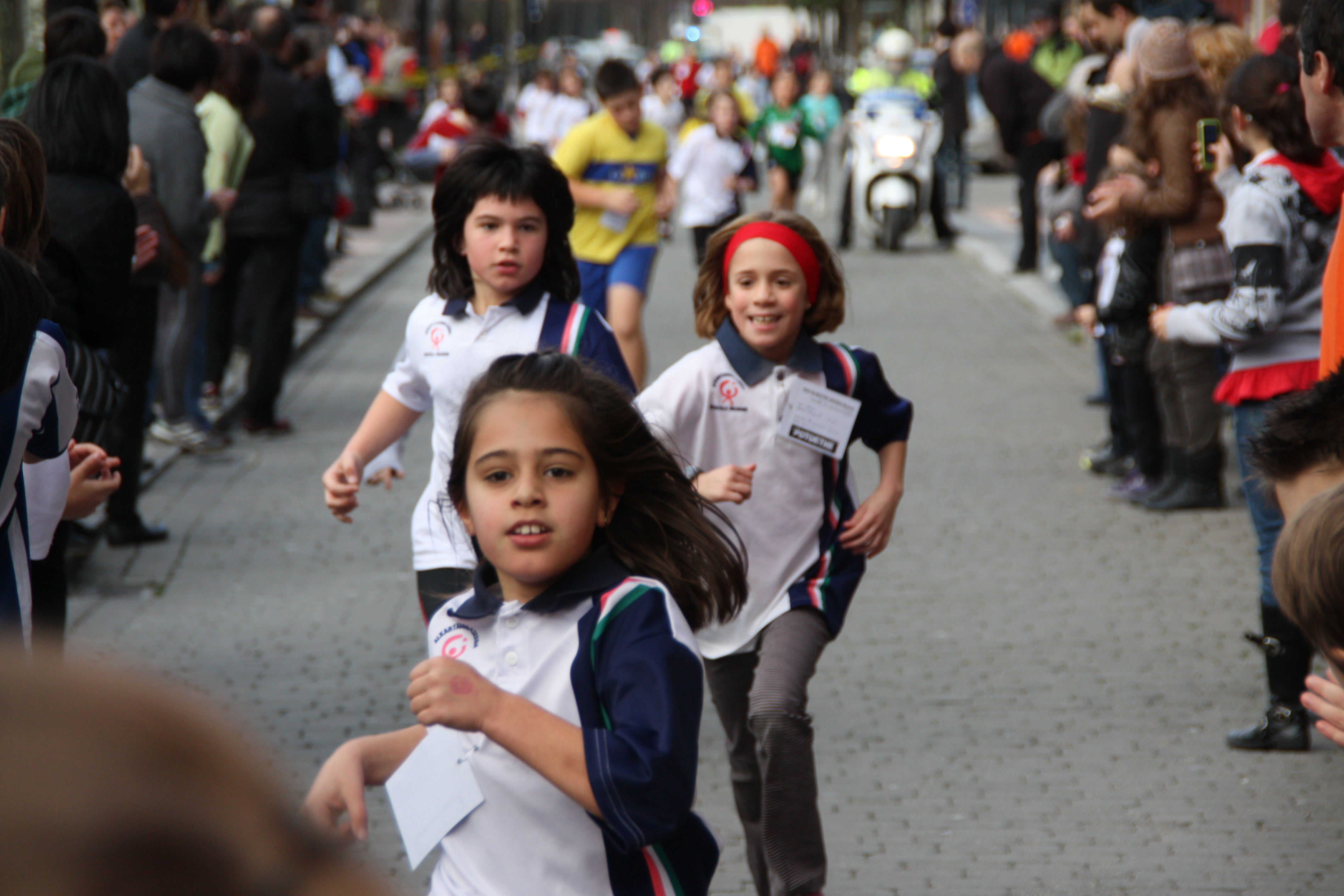 Herriko gaztetxoentzat antolaturiko San Silbestre lasterketaren lehenengo txandaren amaiera Nafarroa Etorbidean.