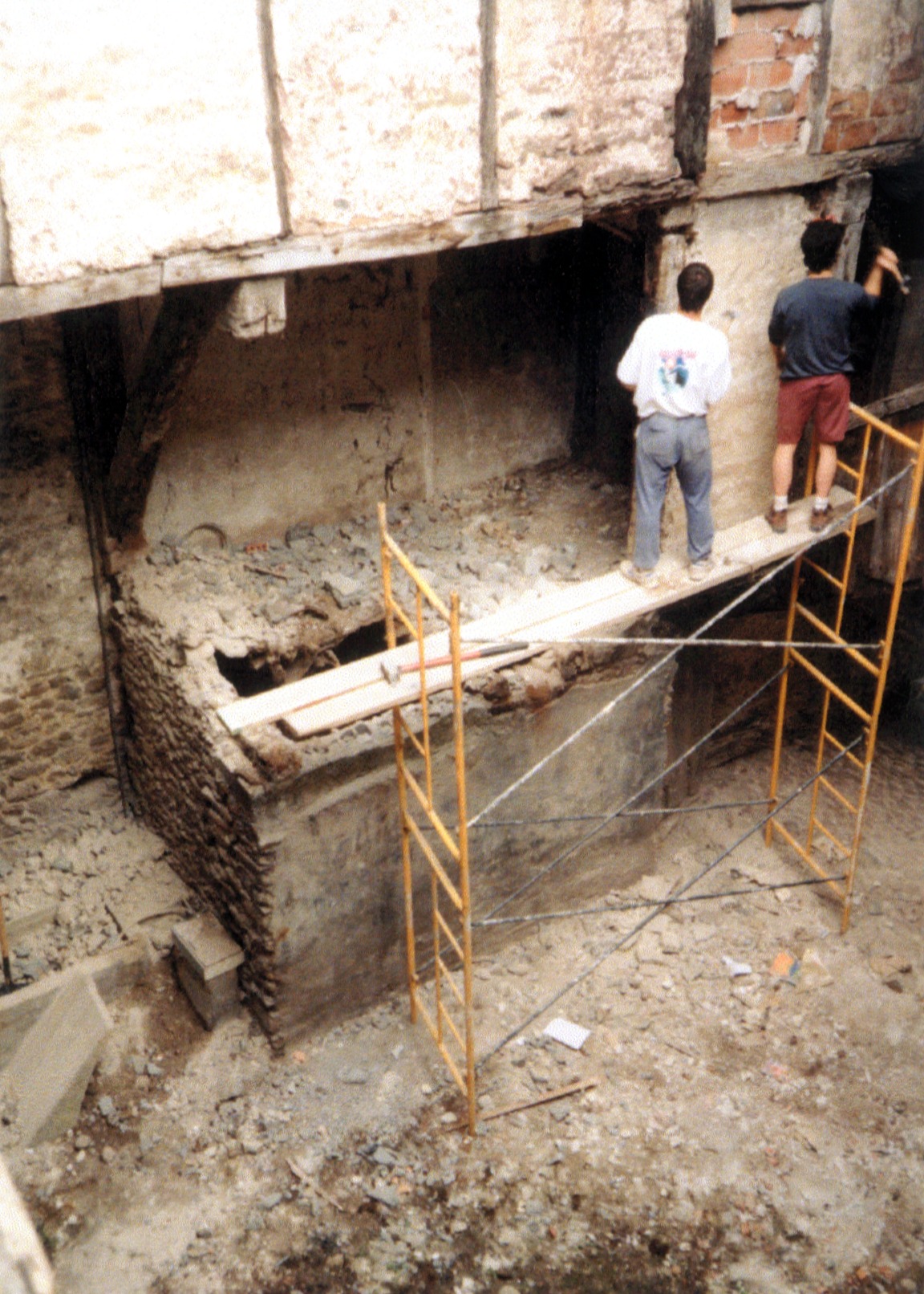Auzolandegietako gazteak patioan lanean (eskaneatuta).
