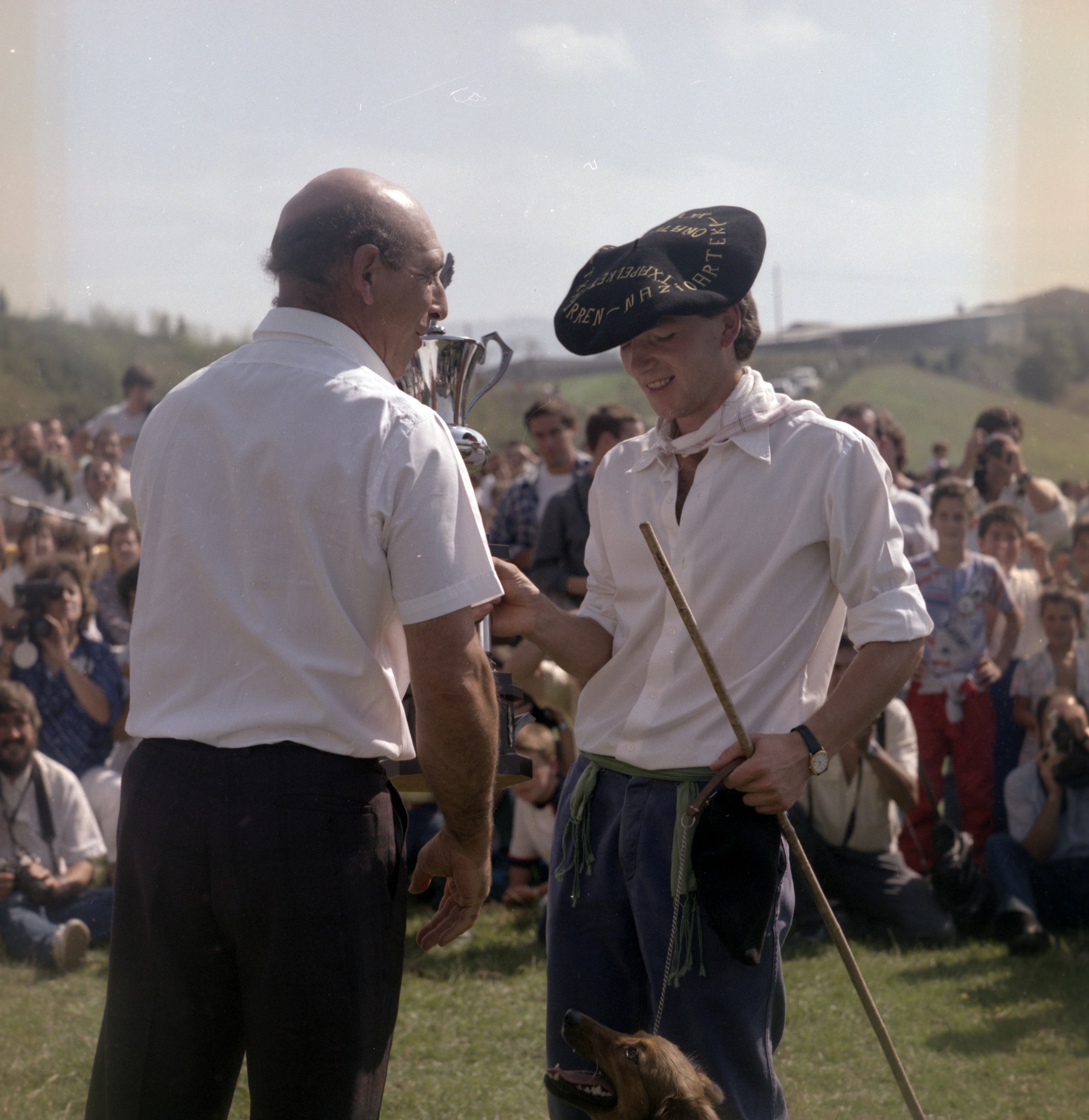 Negatiboen karpetan: "Jesus Mª Arzuaga Argazki Fondoa. Karpeta 1. Negatiboak: Zbk. 1etik-791era. Profesionalak" Negatiboan: "Concurso perros pastor 22-9-86" Editor: Oñatiko Udala Gipuzkoa Negatiboa pelikulan 6 x 19 cm Koloretan