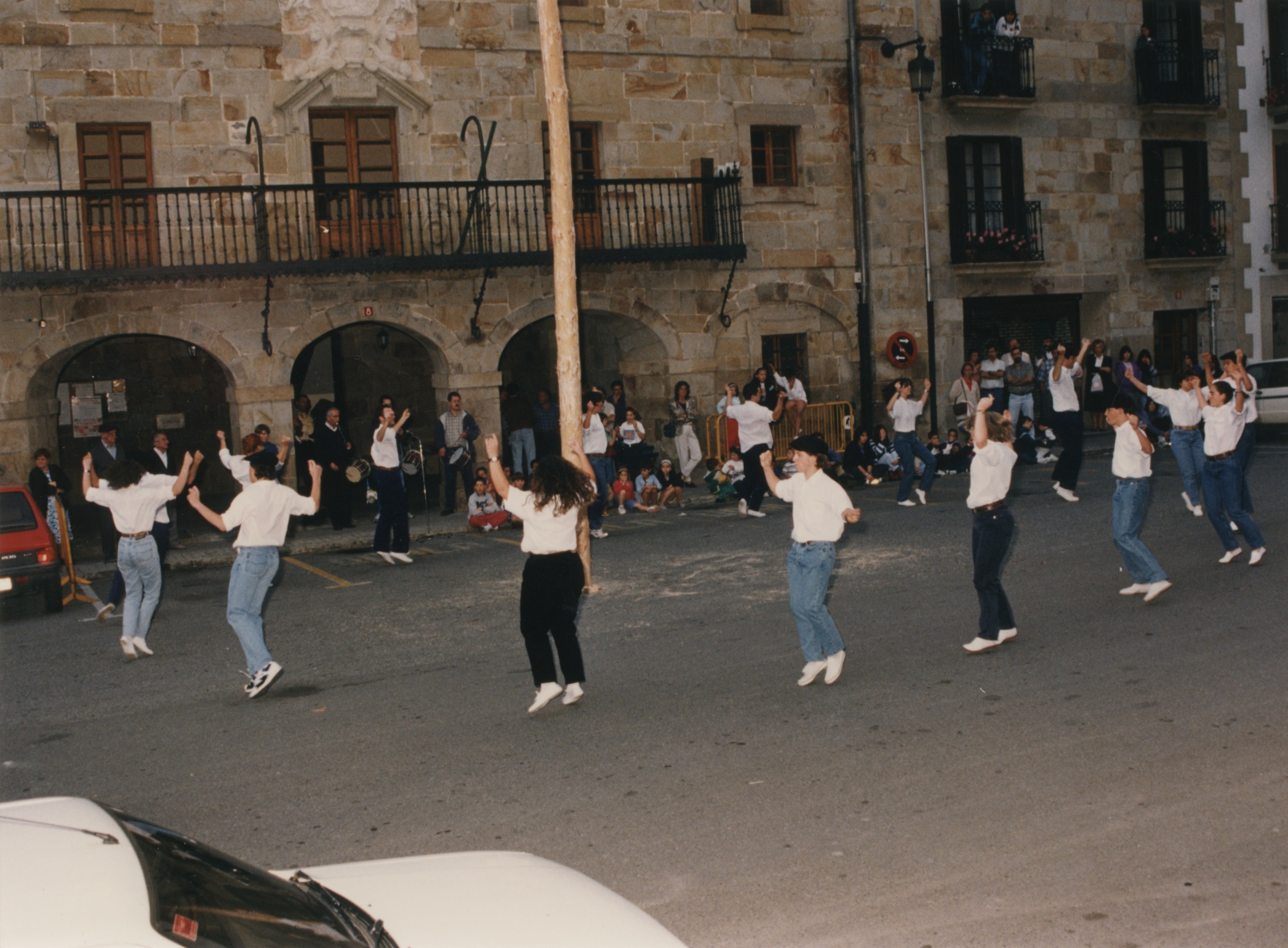 Oinarin taldekoak aurreskua dantzatzen San Juan arbolaren inguruan