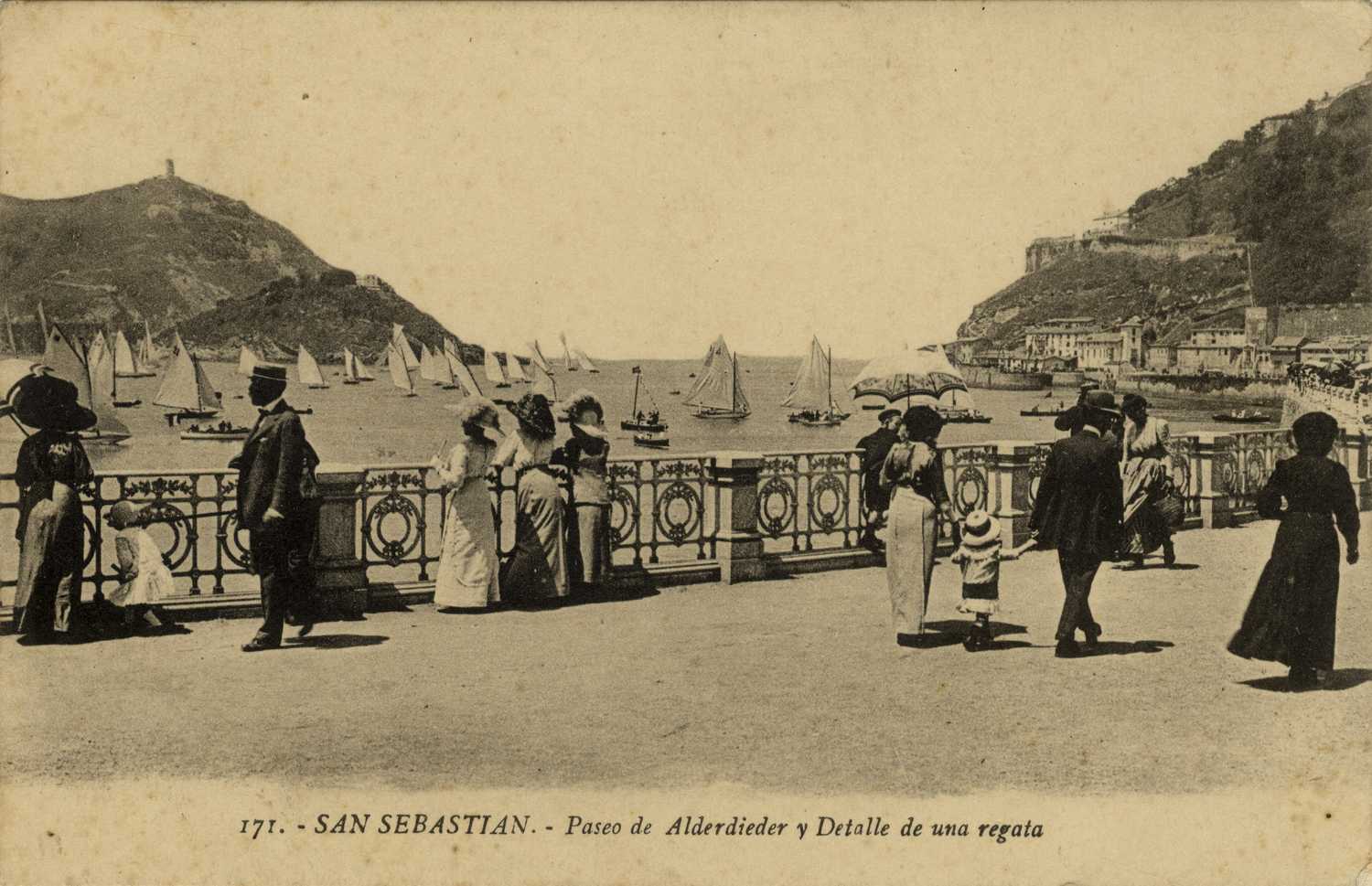 San Sebastián : paseo de Alderdieder y detalle de una regata / Cliché Gonzalez