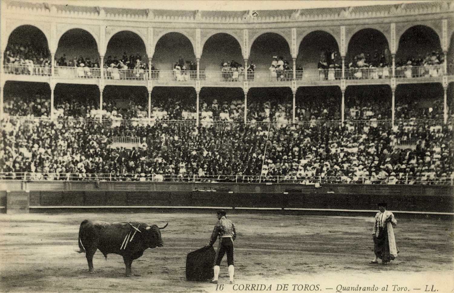 Corrida de toros : preparando el toro para la suerte de muleta / LL
