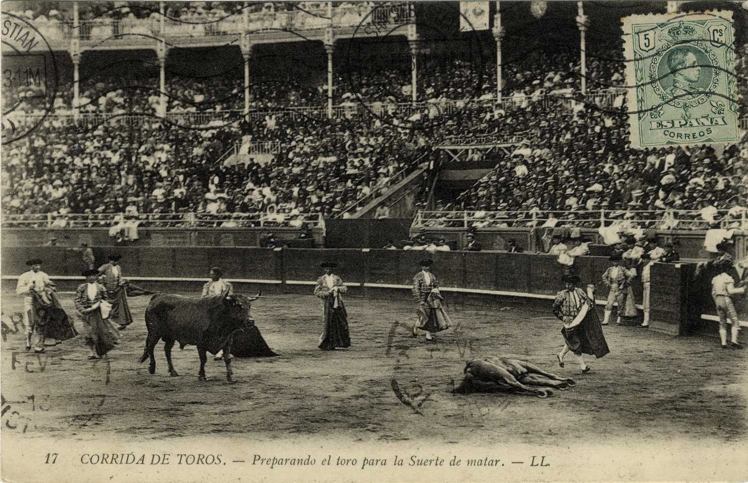 Corrida de toros : preparando el toro para la suerte de matar / LL.
