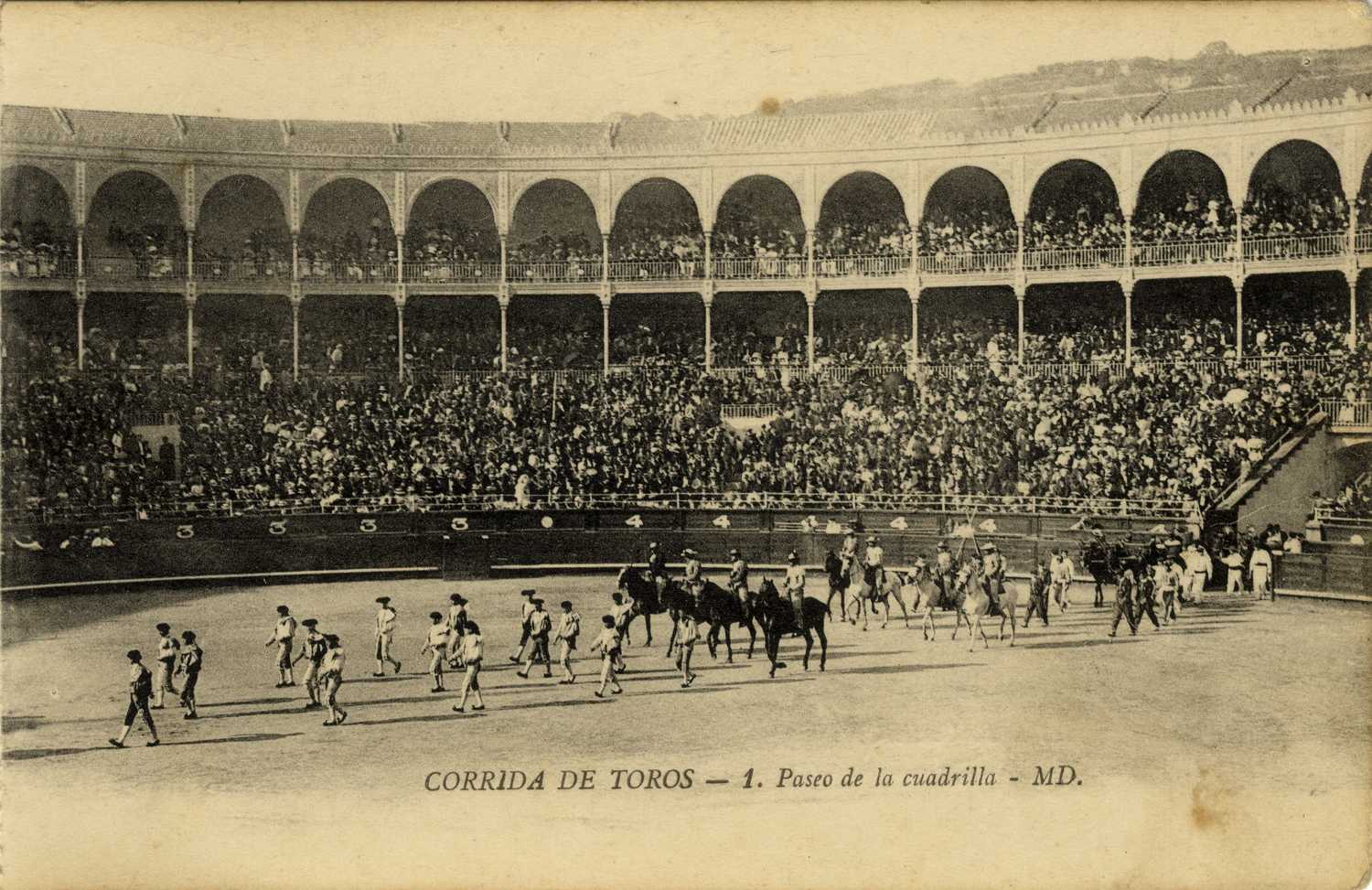 Corrida de toros : paseo de la cuadrilla = Courses de taureaux : sortie de la troupe / MD.