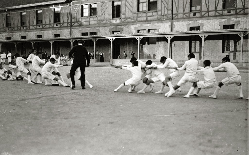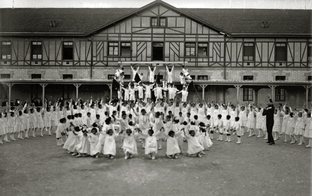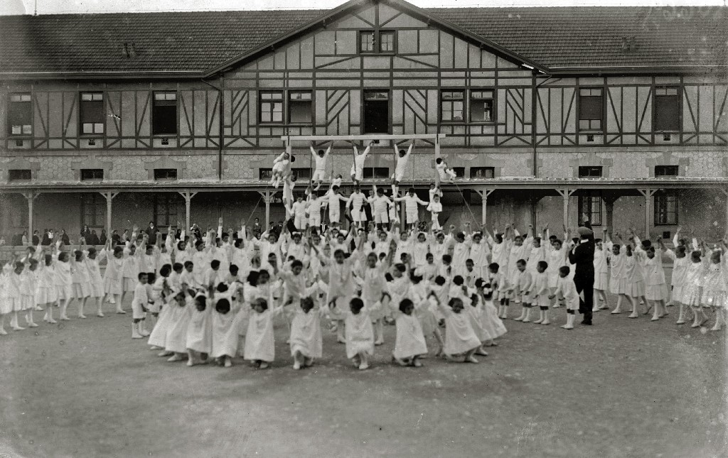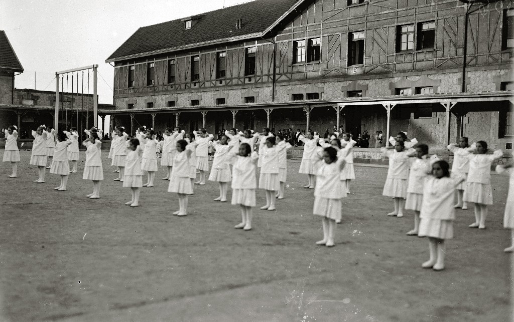 EXHIBICION DE GIMNASIA INFANTIL EN EL PATIO DEL ASILO REINA VICTORIA EN ZORROAGA. (Foto 4/5)