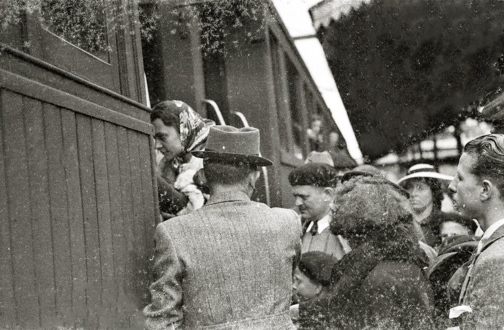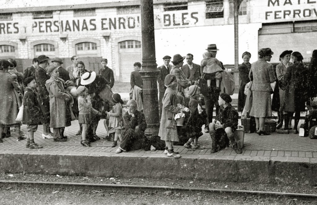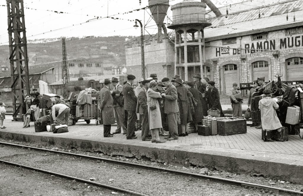 GRUPO DE EXILIADOS FRANCESES TOMANDO UN TREN EN LA ESTACION DEL NORTE. (Foto 3/9)