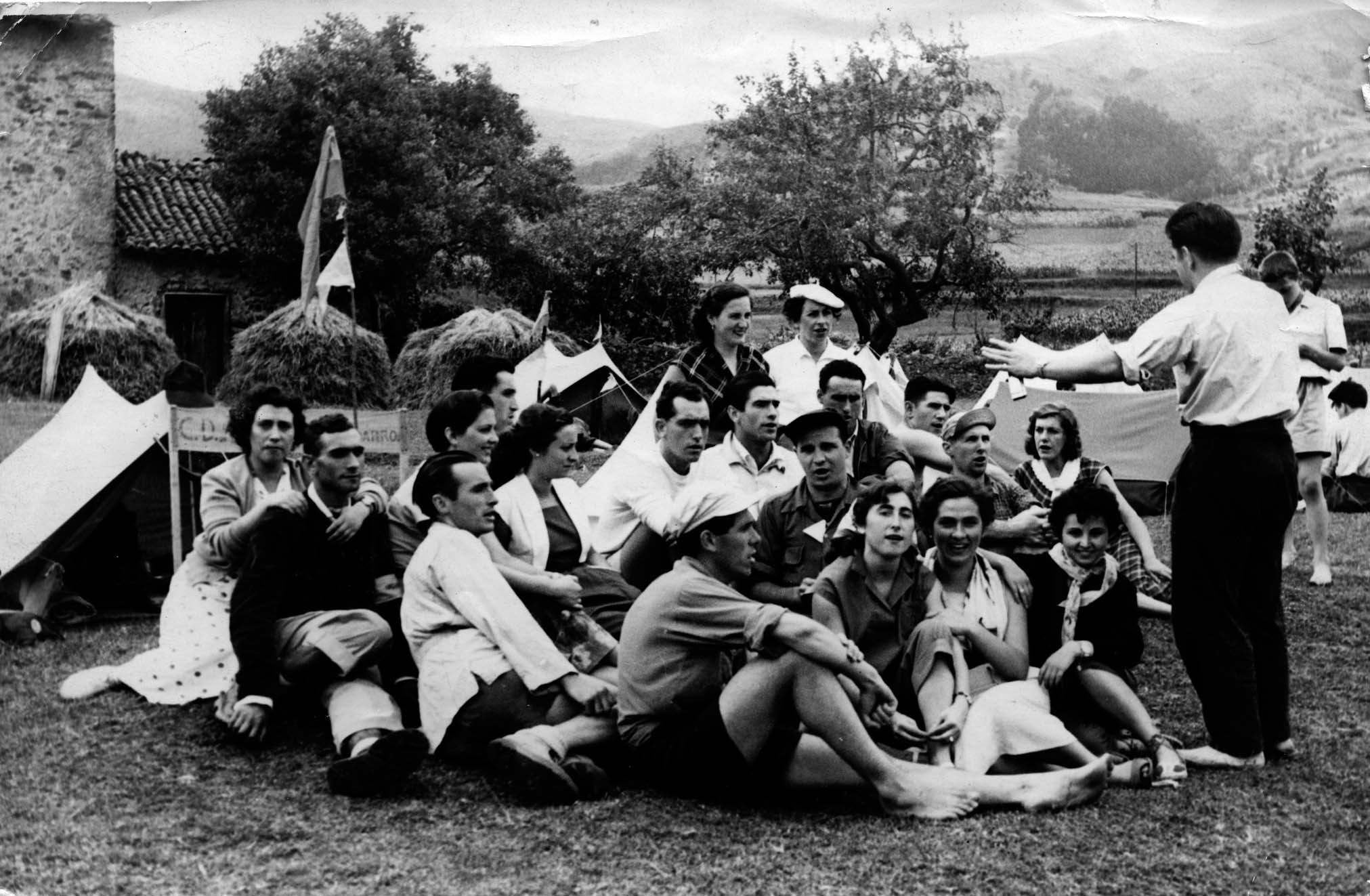 Juan San Martin Eibar Kirol-Elkarteko adiskide batzuekin kanpaldian