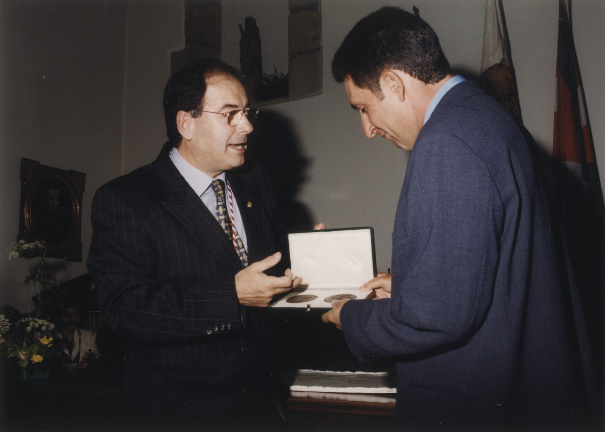 Nombramiento de Hijo Predilecto de Hondarribia al golfista José María Olazabal : el alcalde de Hondarribia otorgando el obsequio al golfista José María Olazabal