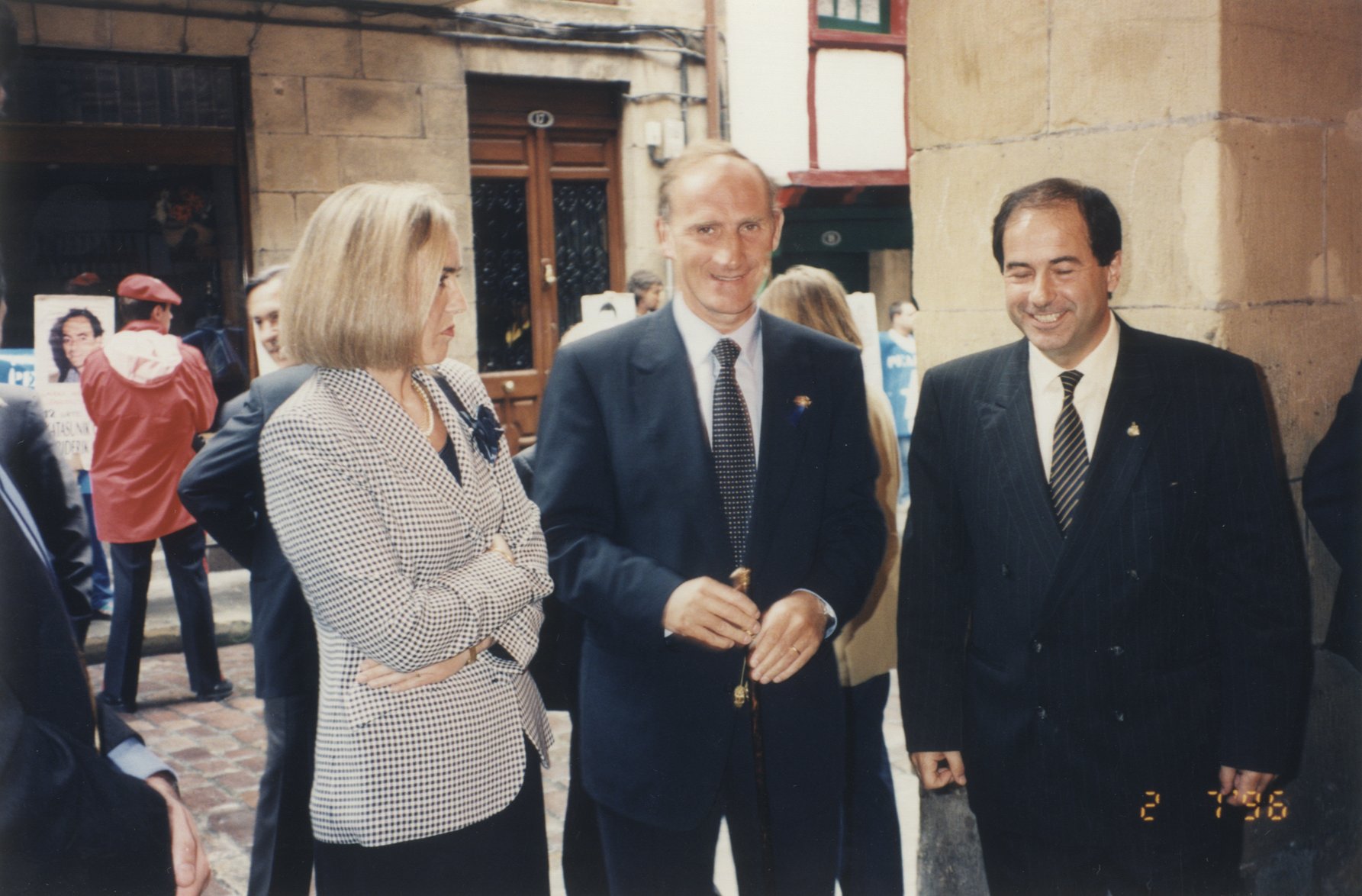 Borja Jauregi junto a Roman Sudupe y Esther Larrañaga a la entrada de la sesión plenaria de las Juntas Generales