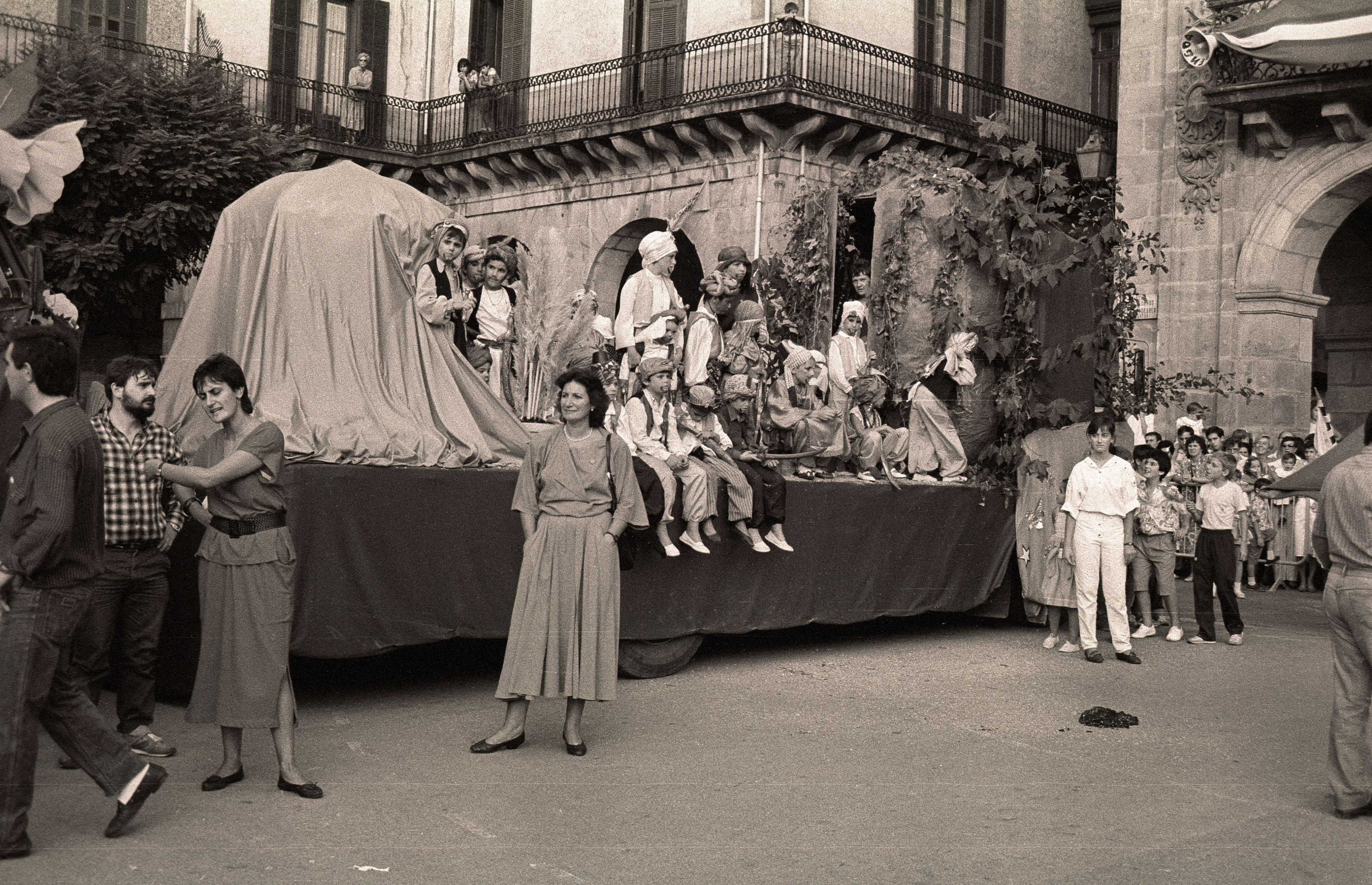 Desfile de una carroza en la plaza de los Fueros