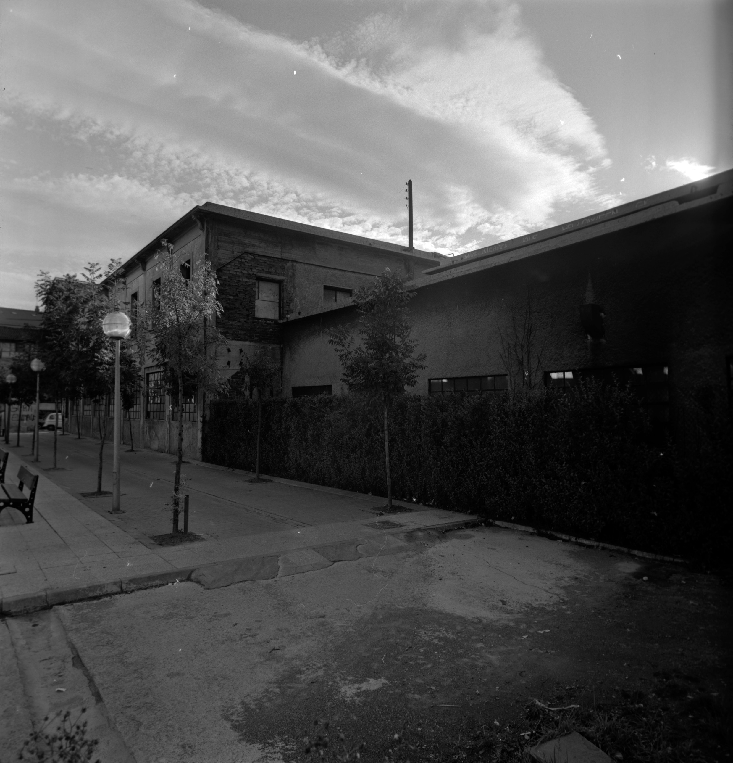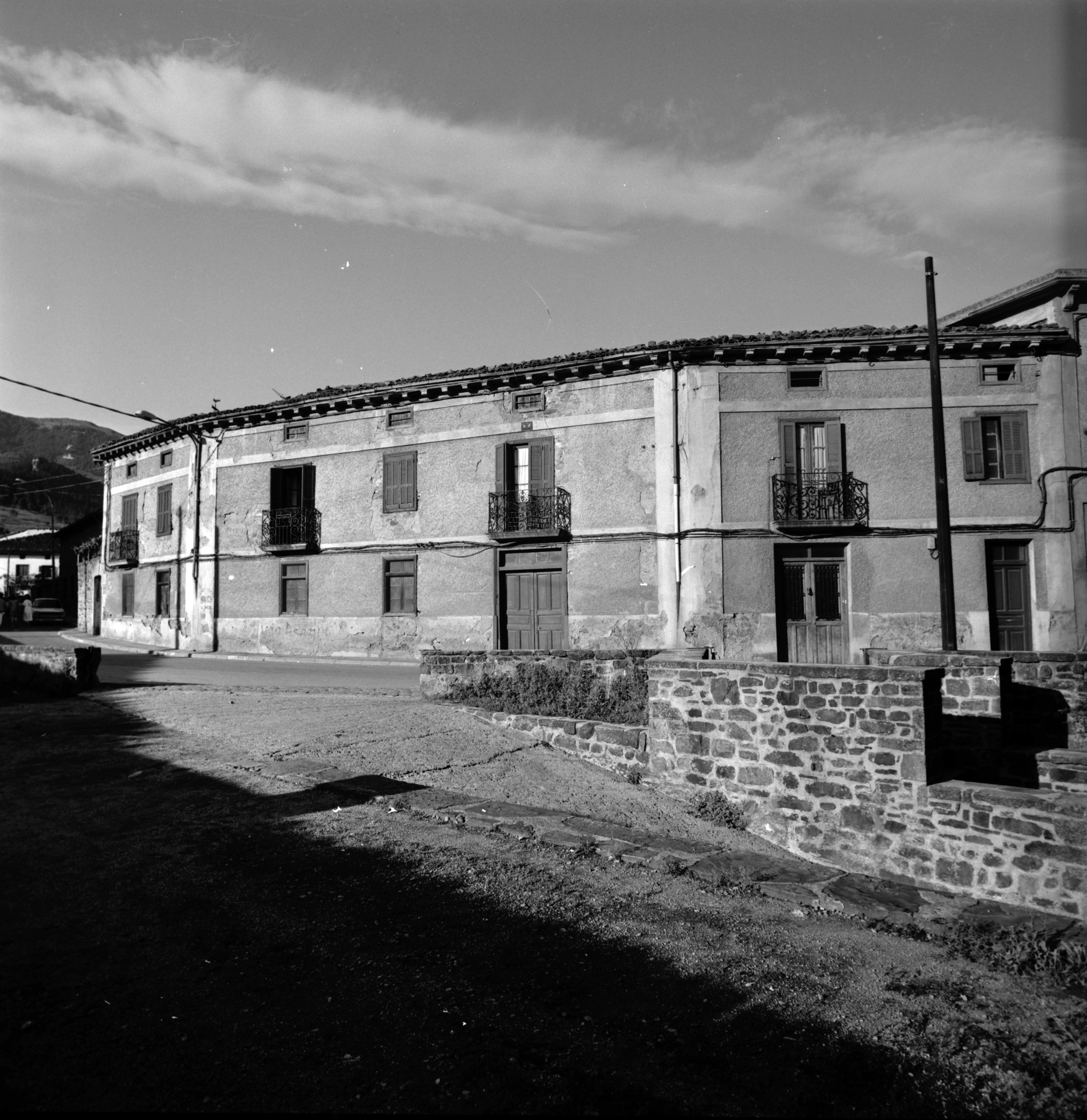 Arantzazuko Ama kaleko 'Fábrica La Trinidad' inskripzioa duen balkoia