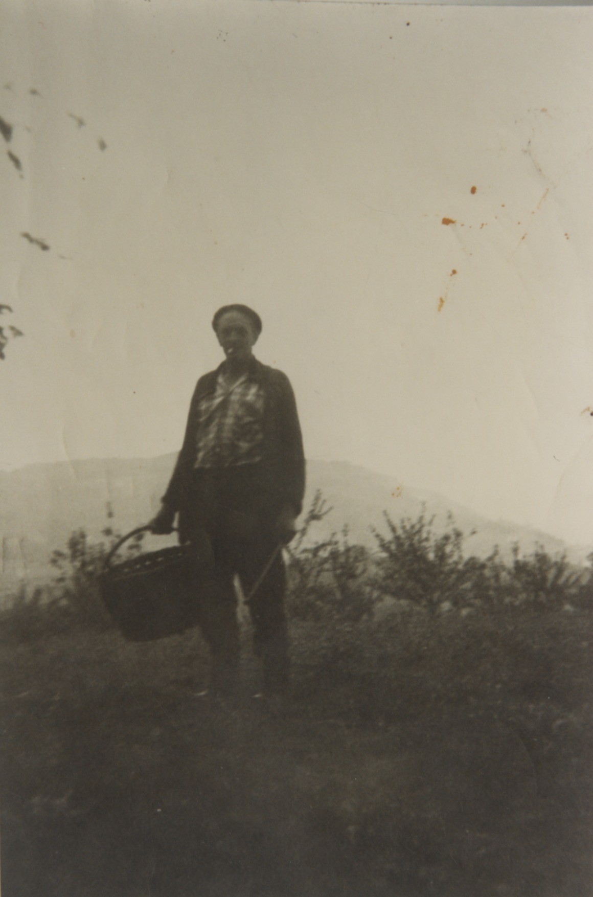 Baserritarra otarre eta kizkiarekin sagar bilketan