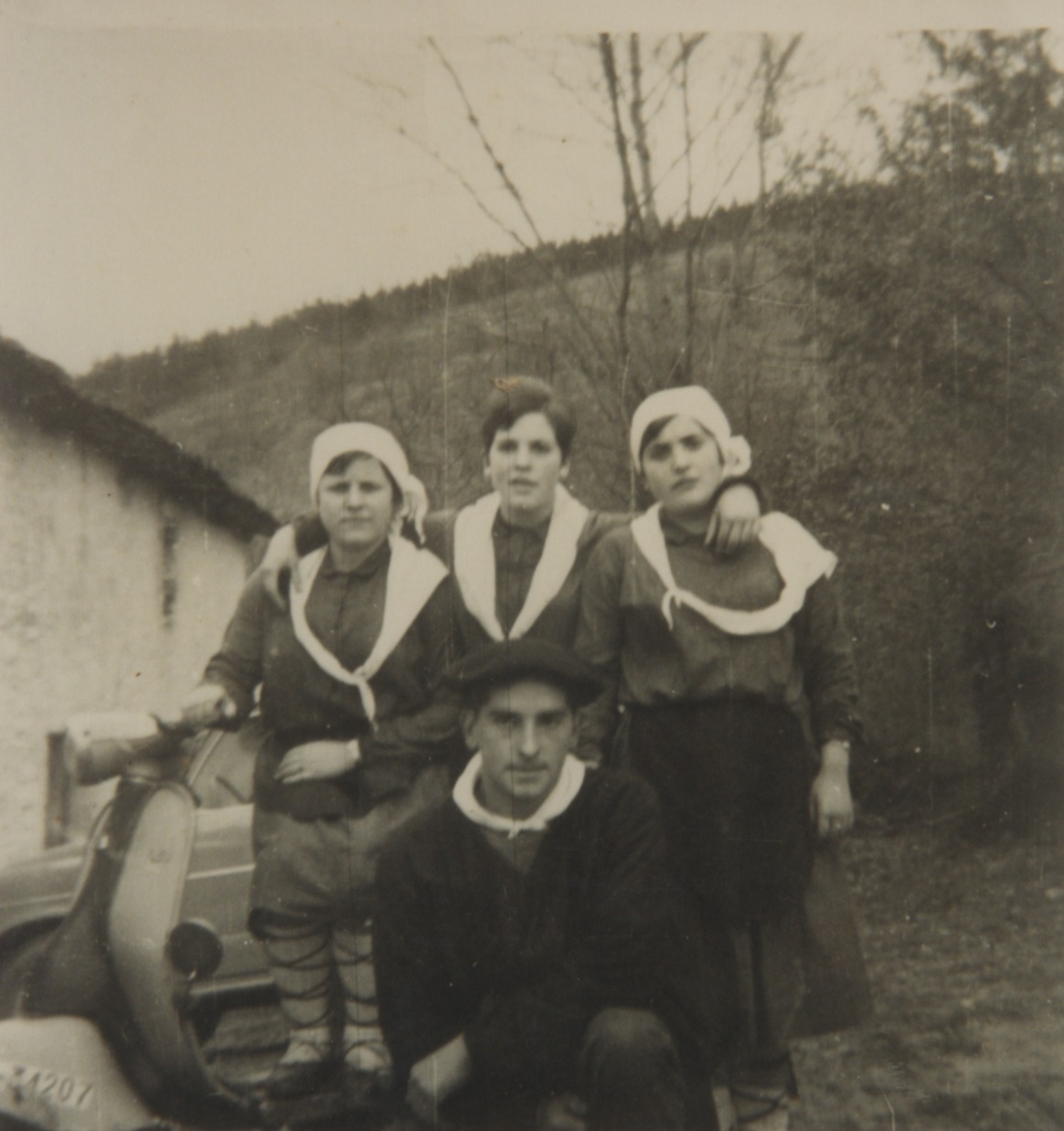 Baserritarrez jantzitako lau gazte