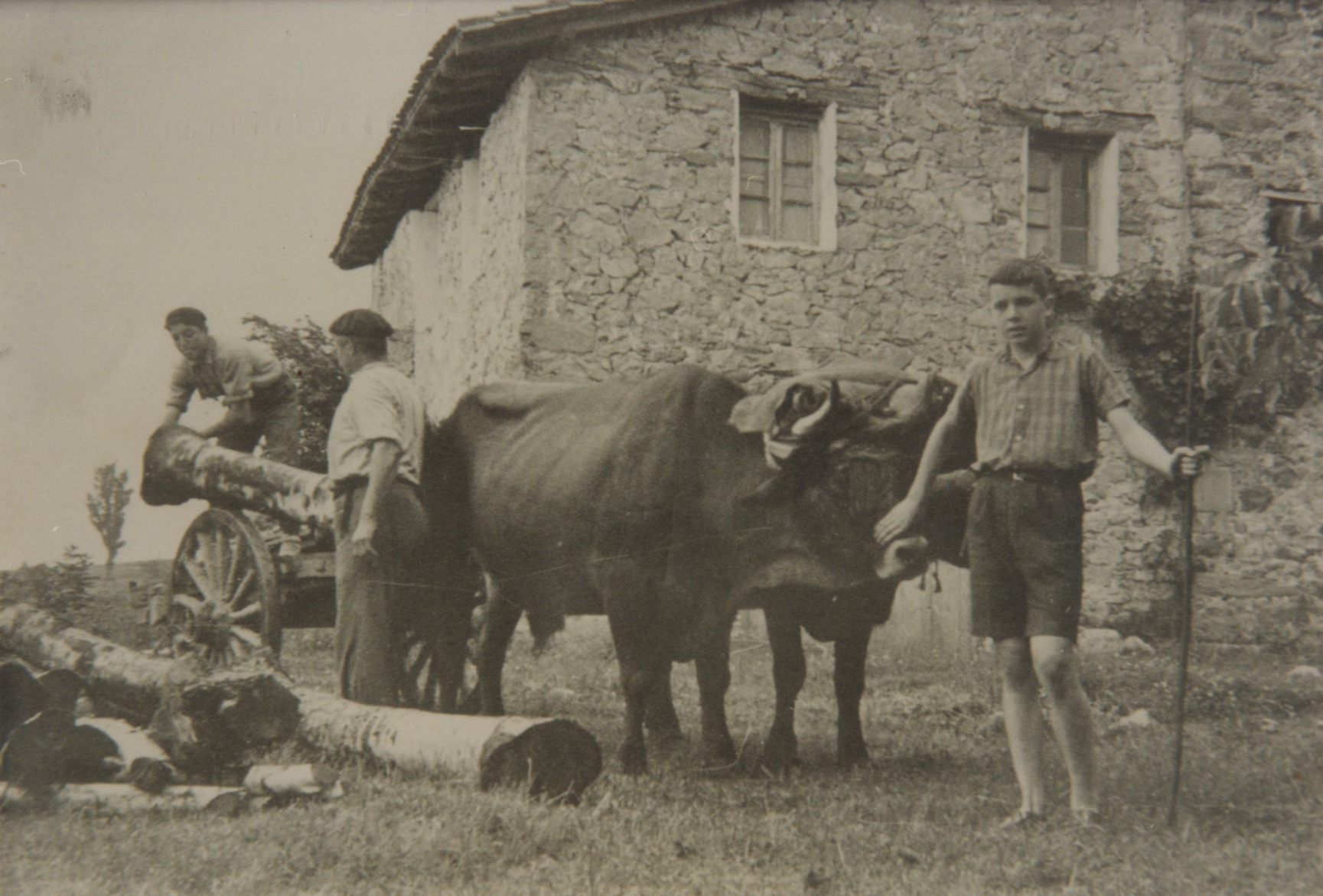 Baserritarrak idi eta gurdiarekin lanean