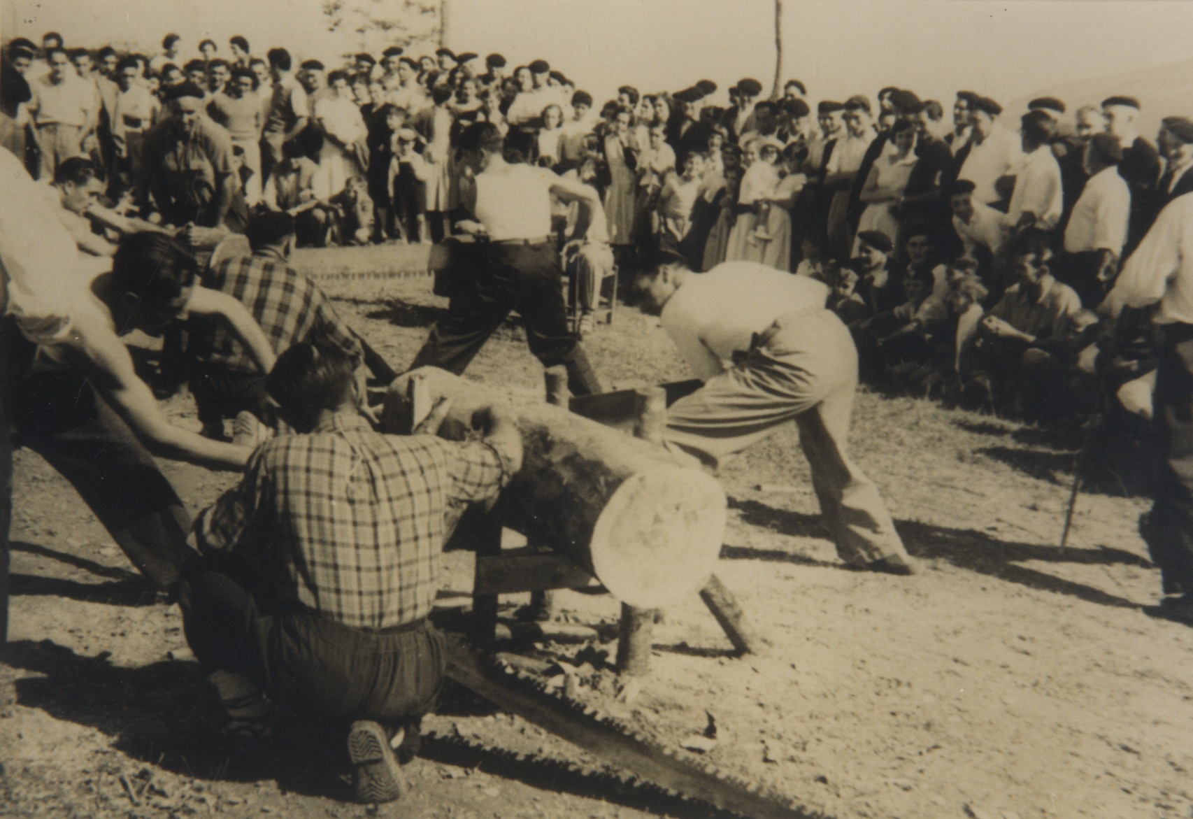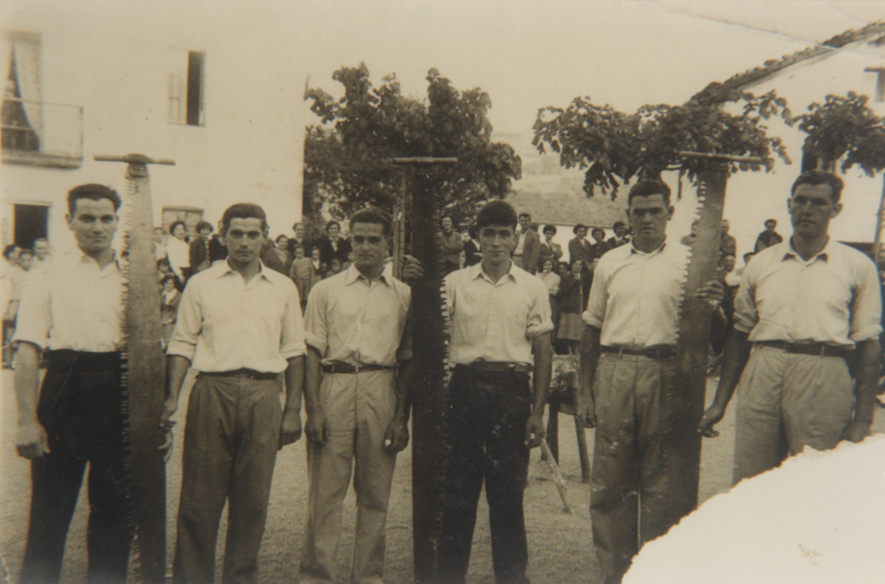 Trontzalariak trontza-zerra eskuetan dutela