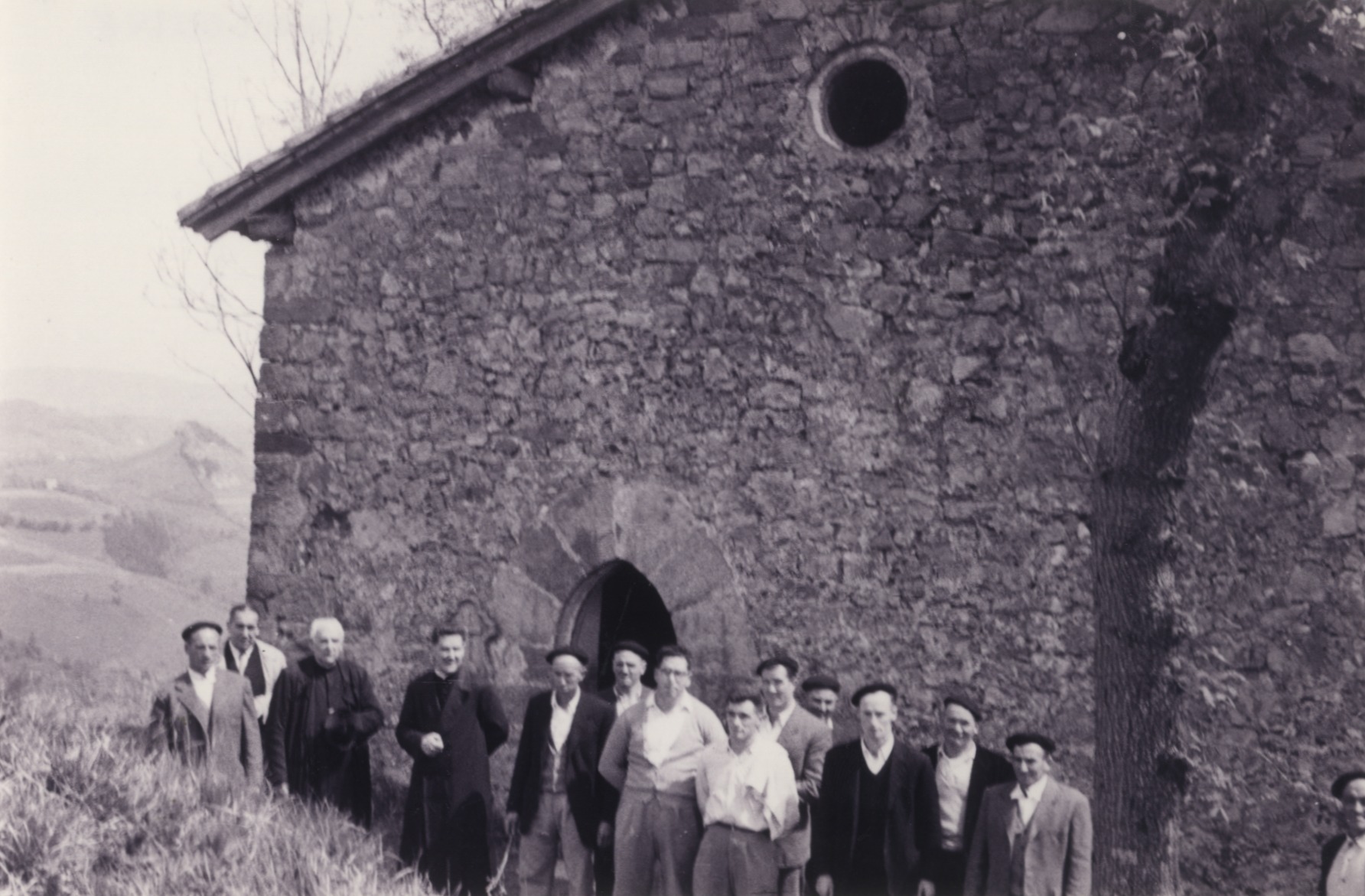 Gizon taldea mendiko ermitan