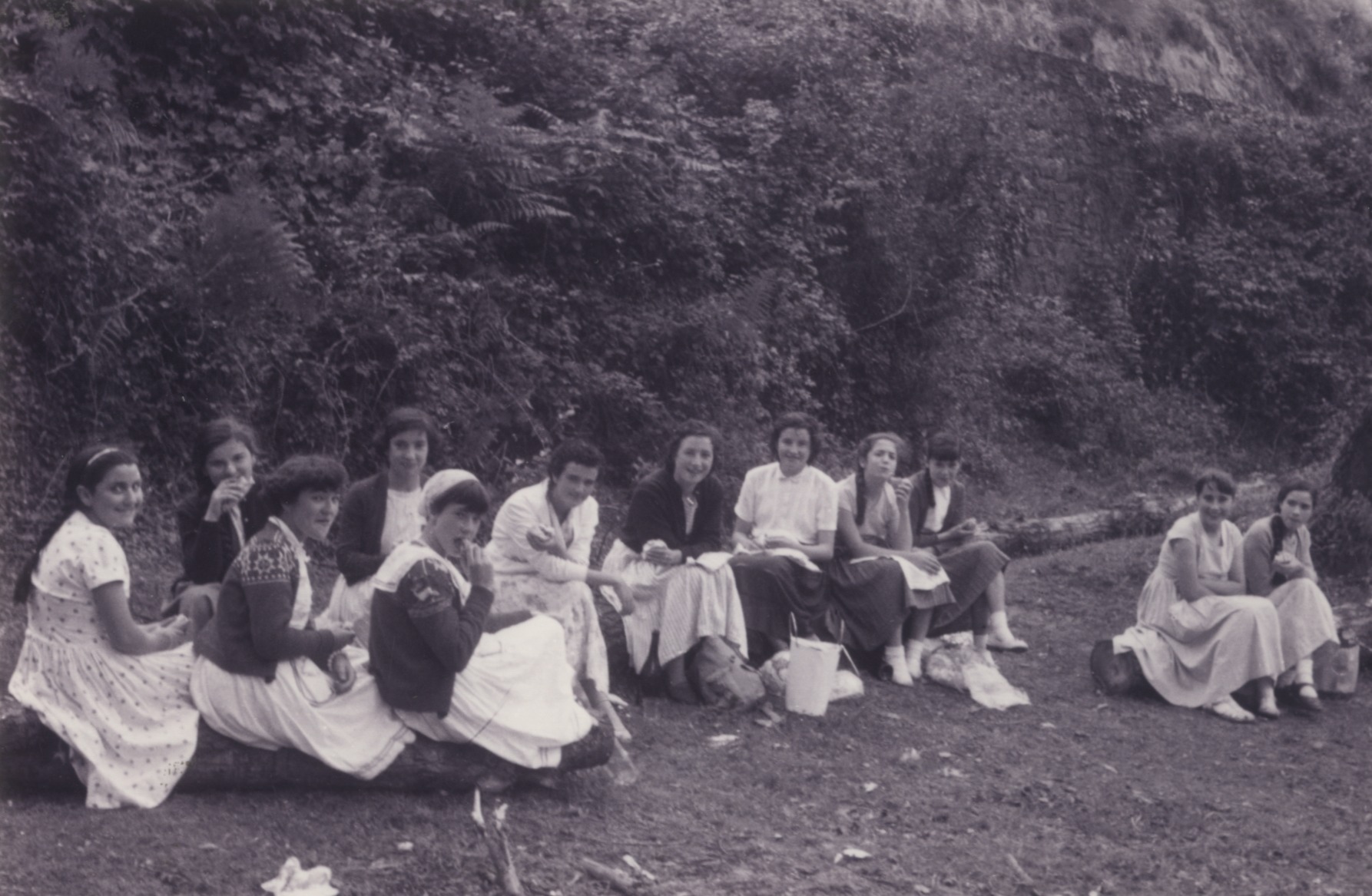 Neska gazte taldea mendi irteera batean
