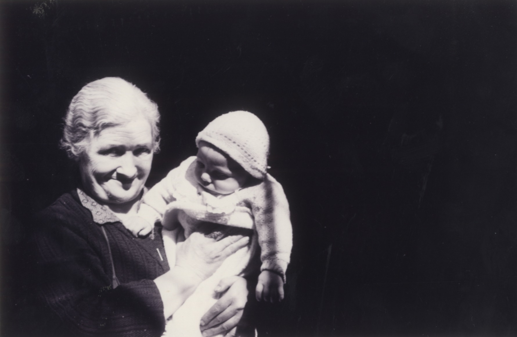 Amona haurra besoetan duela