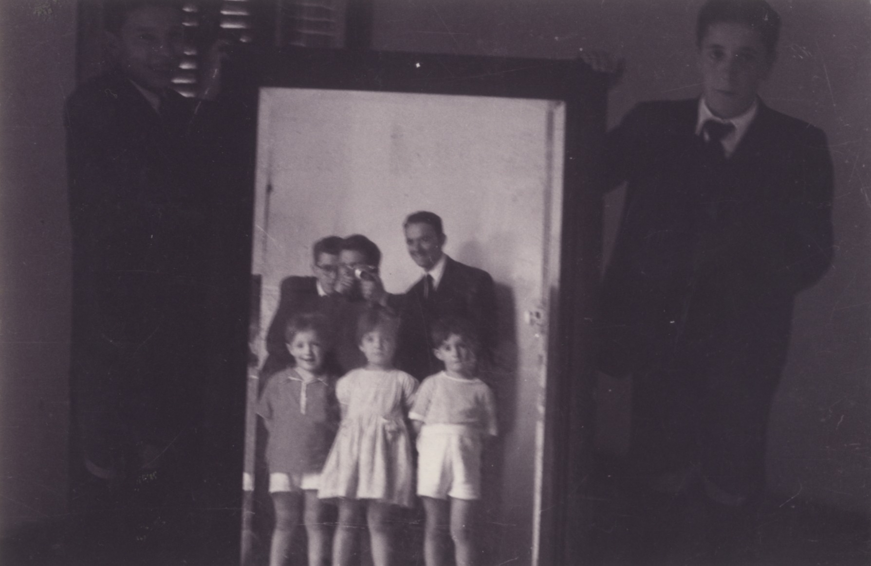 Ispilu baten isladari eginiko talde argazkia
