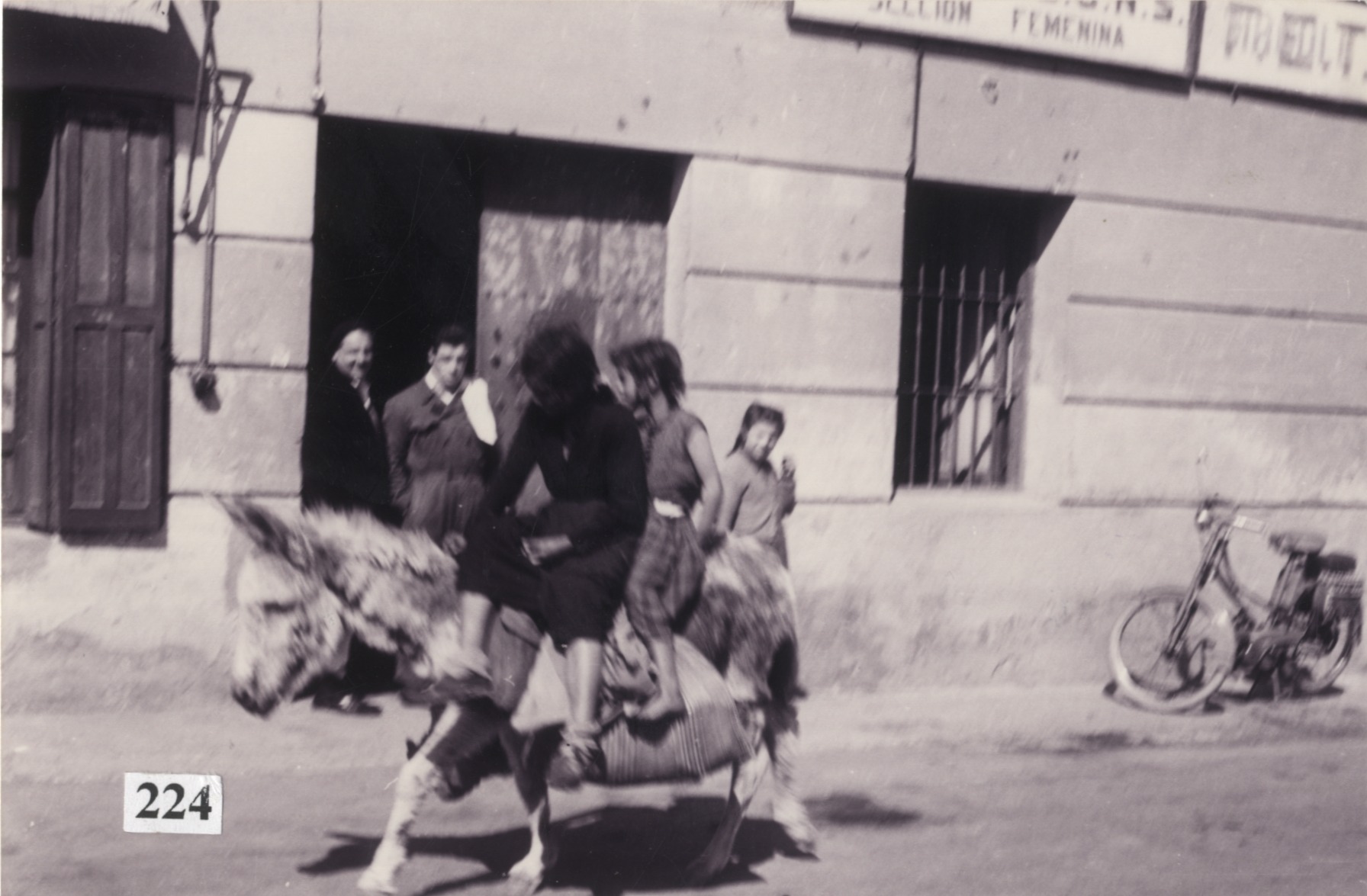 Bi gazte asto gainean Urnietako kaleetan zehar