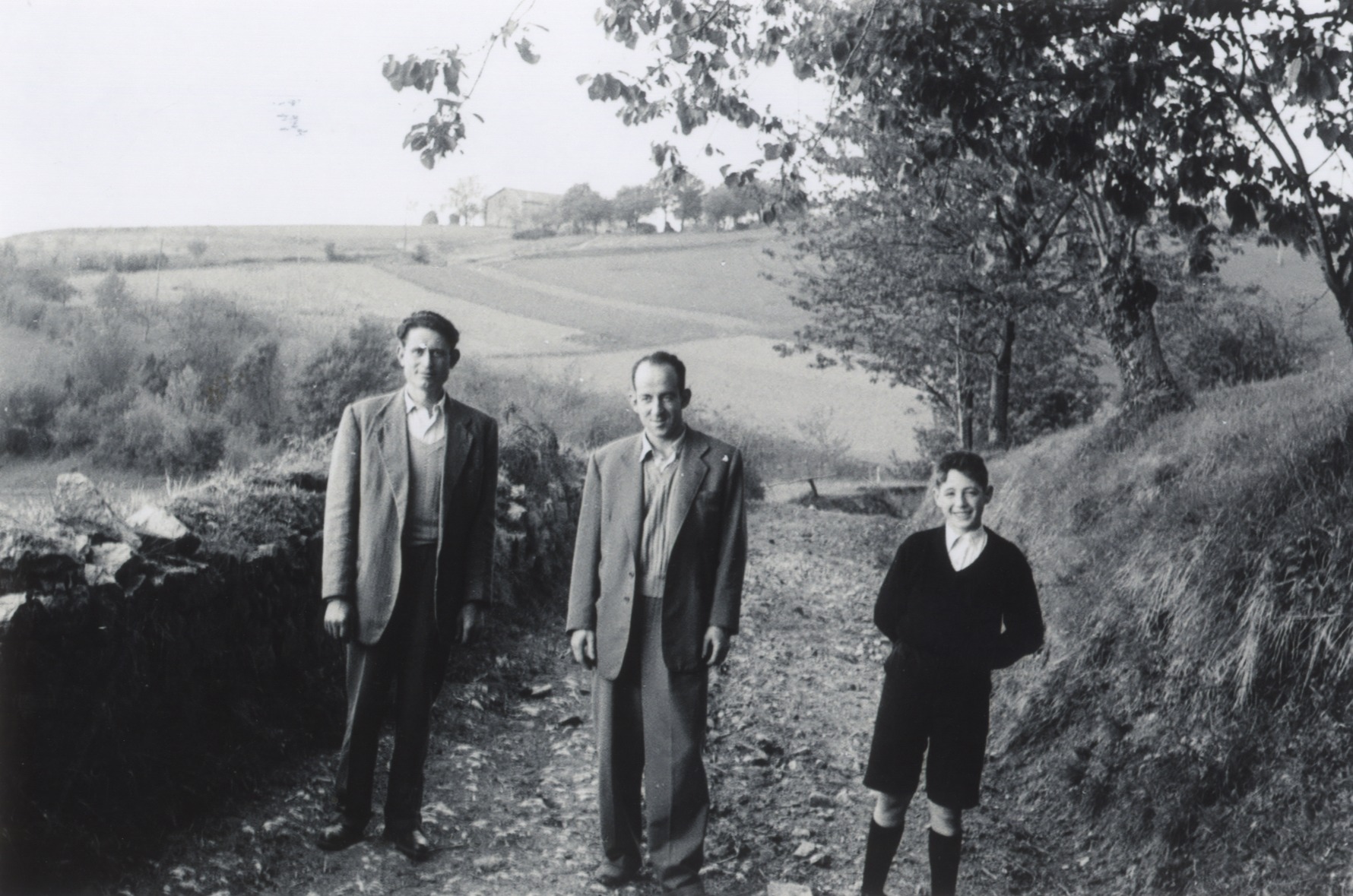 Bi gizon eta haur bat mendi bidean