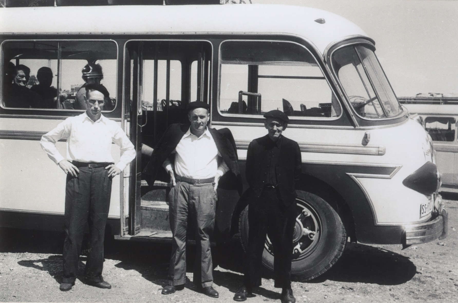 Hiru gizon autobus kanpoan