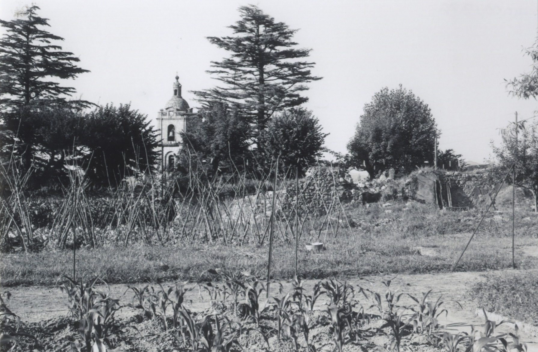 Baratzak eta atzean San Migel elizaren kanpandorrea